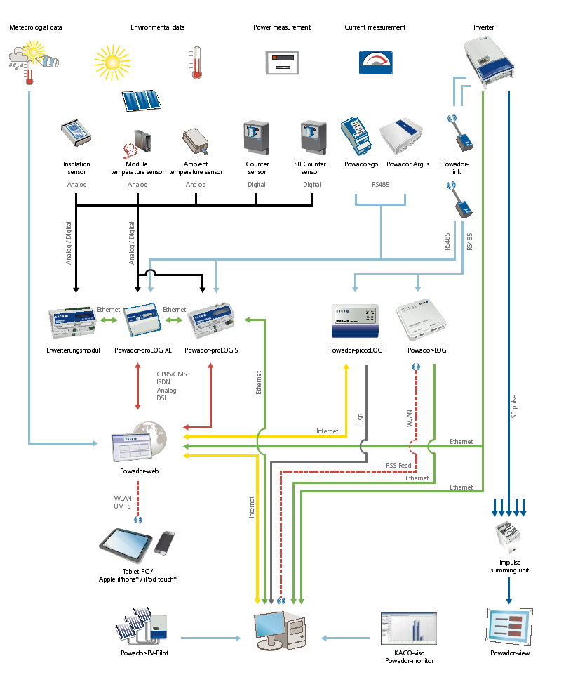 You can master now any situation for your solar power stations with our OEM Partner's New energy data loggers and accessories in India. With our OEM Data Monitoring Partner we, at BHARAT SOLAR ENERGY provide DATA MONITORING SERVICES for solar parks and solar power companies & solar service providers for monitoring METEOROLOGICAL DATA, ENVIRONMENTAL DATA, CURRENT MEASUREMENT, POWER MEASUREMENT, ISOLATION SENSOR, TEMPERATURE SENSOR, COUNTER SENSOR, DIGITAL ANALOGS, ALARM, ENERGY COUNTER, CONNECTION BY MODEM, GSM/GPRS, RECORDING OF THE WIND SPEED & DIRECTION IN ALL SITUATIONS.